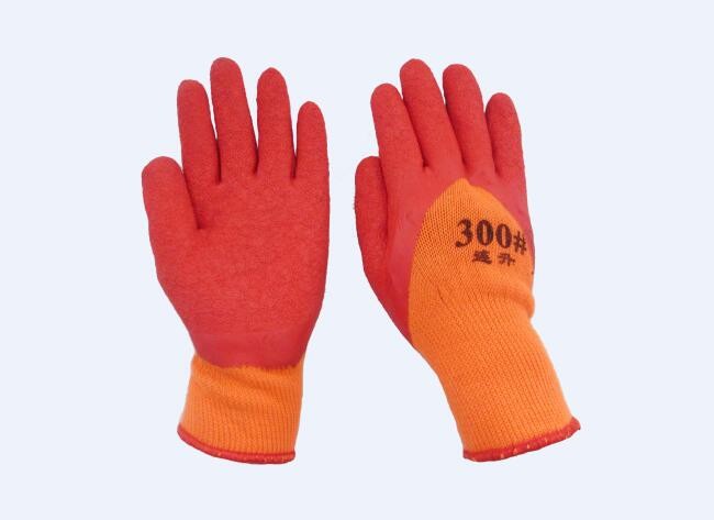 黃紗紅拉絨半浸膠手套