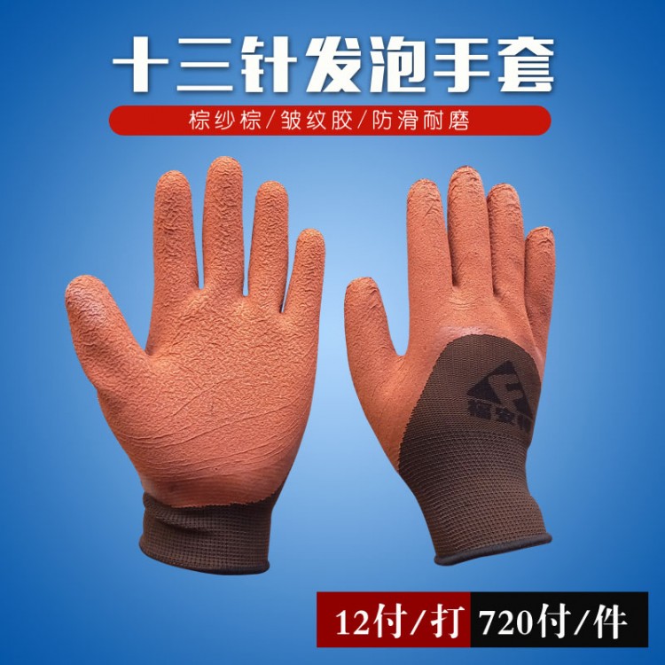 十三針發泡棕紗棕膠手套產品熱銷城市:山東,北京,浙江,杭州,濟南